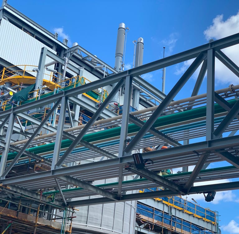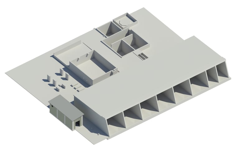 Diseño de fosas de macerado, sistemas de tratamiento de efluentes, tanques de agua y fosas de riego en hormigón armado para una planta industrial. Este proyecto incluyó una coordinación exhaustiva mediante la metodología BIM con otras disciplinas, asegurando una integración fluida y eficiente de todos los componentes.